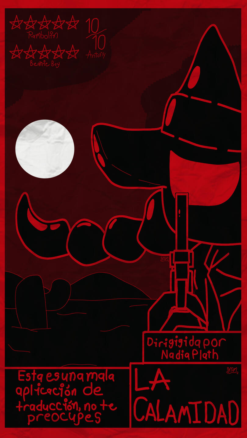 "The Calamity - In Theatres Now!!"Poster I drew for ArtFight 2023. Admittedly, the spanish is through a translator, so it may be rough. The text is self aware of that.Character Belongs to: twinvenus